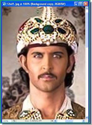 Step 17 : With the Eraser Tool gently wipe away near the eyes and eyebrows. You can increase or decrease the size of the tip by using the bracket keys [ ] on your keyboard.